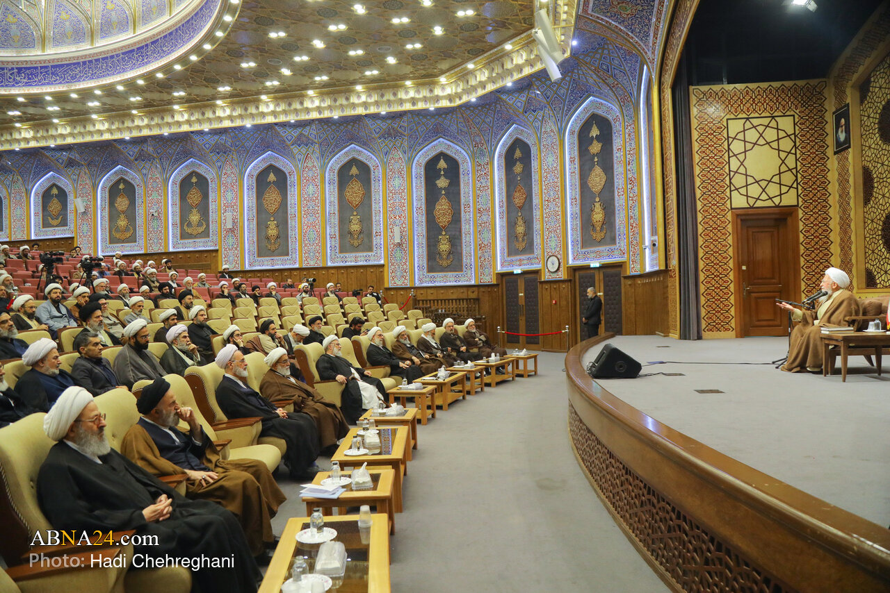 Shirika la Habari la Kimataifa la Ahlul-Bayt (as) -ABNA- Mkutano wa walimu wa ngazi za juu na za juu zaidi pamoja na wataalamu wa taasisi maalumu za Chuo cha Dini mjini Qom ulifanyika asubuhi ya Alhamisi, tarehe 15 Aban 1404 (04 Novemba). Mkutano huo ulihudhuriwa na wataalamu, wanasayansi wa dini na walimu wa ngazi za juu, na hotuba za Ayatollah al-Uzma Javadi-Amoli na Ayatollah Shab Zindahdar ziliwasilishwa katika ukumbi wa mikutano wa Madrasa ya Imam Kazim (a.s).